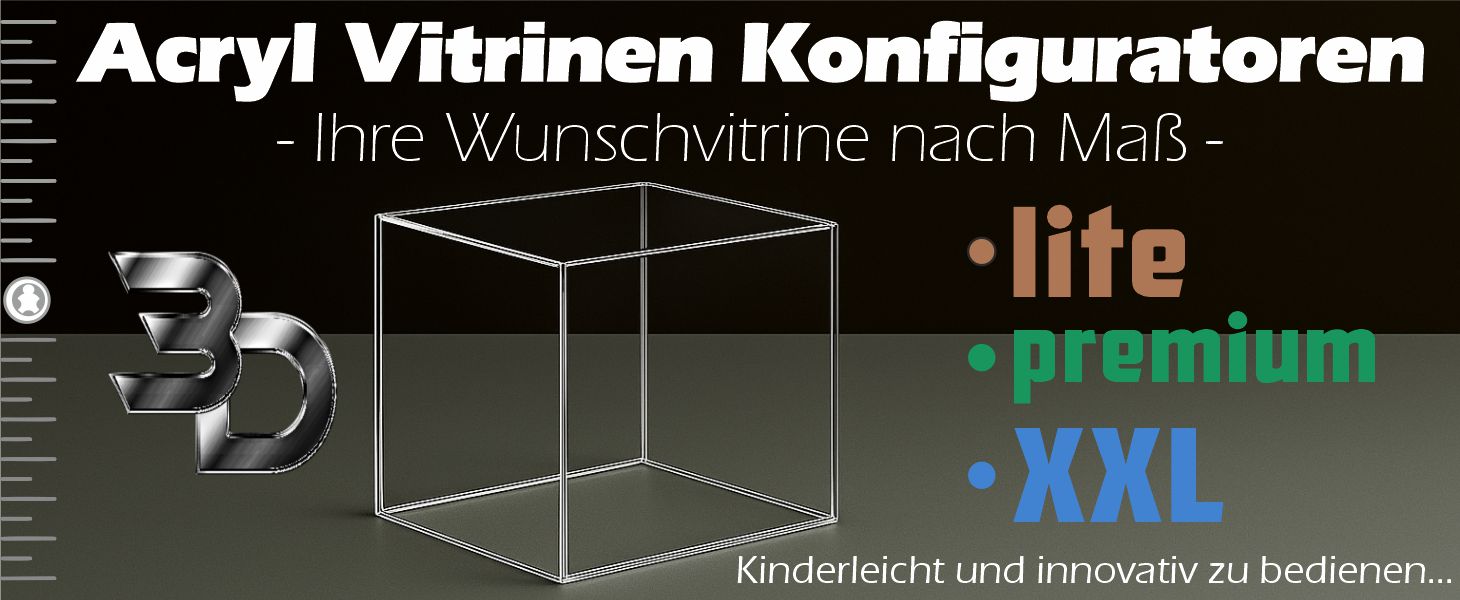 Versuchen Sie es doch gleich selbst einmal, und überzeugen Sie sich von der leichten Bedienbarkeit unserer Konfiguratoren für Acryl Vitrinen.