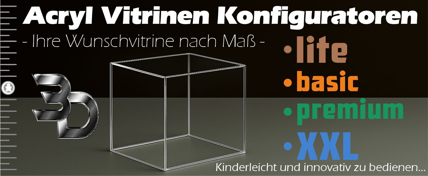 Versuchen Sie es doch gleich selbst einmal, und überzeugen Sie sich von der leichten Bedienbarkeit unserer Konfiguratoren für Acryl Vitrinen.