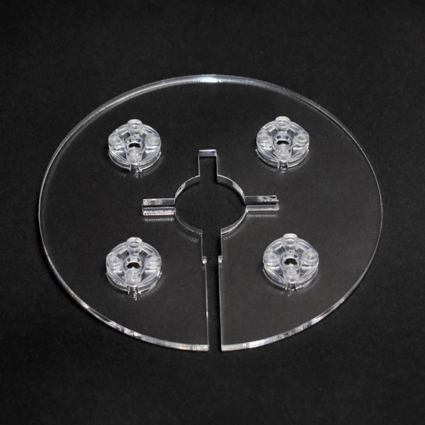 In die vier gelaserten Drehtellerplatten passen die beiliegenden runden FiguWorld® 2x2 er Plättchen perfekt hinein.