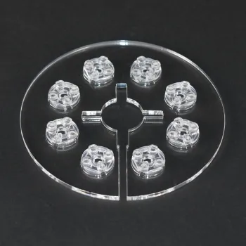 In die gelaserten Drehtellerplatten passen die beiliegenden runden FiguWorld® 2x2 er Plättchen perfekt hinein.