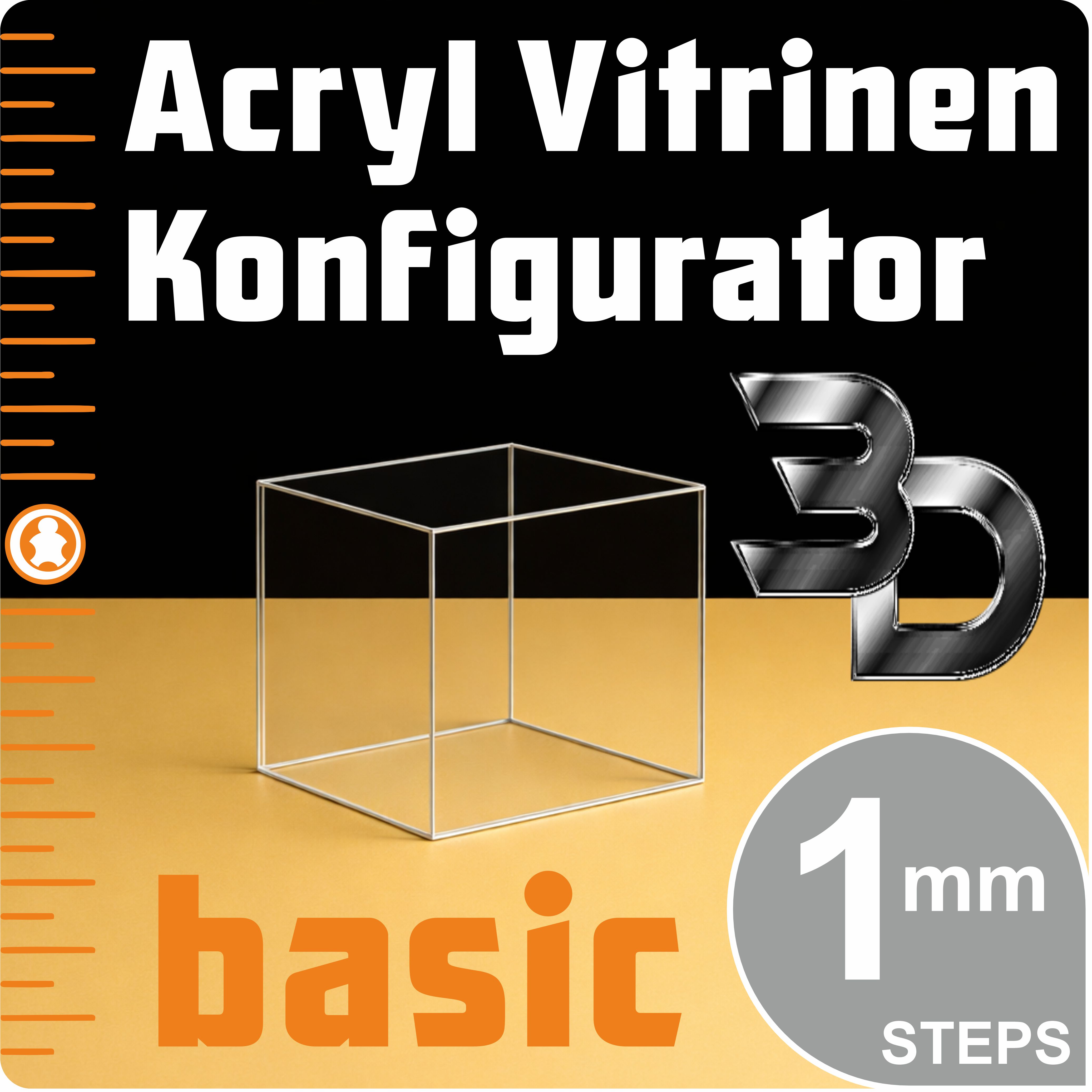 3D Basic Acryl Vitrinen Konfigurator nach Maß in 1 mm Steps